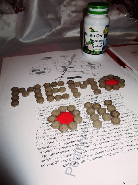 Flaconul MEMO ON primit in teste contine 100 de tablete, usor de administrat. Sunt realitate in totalitate din plante (indiene), astfel ca de-a lungul perioadei de testare n-am observat niciun efect advers.